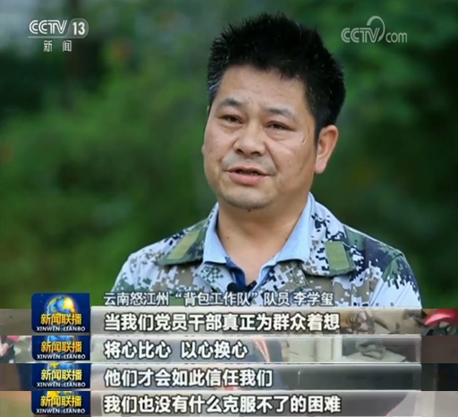 背包队员李学玺等三人入驻的马垮底村,自然条件极为恶劣,可仍有四户人家不愿意搬迁。特别是一个叫贵生子的傈僳族大叔,第一次连门都没让他们进。再次登门,背包队员不仅背着各自的睡袋,还给贵生子的小孙子带去了礼物。