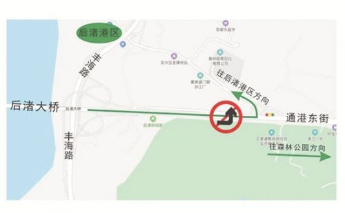 日前,记者从市交警支队了解到,为进一步优化通港东街后渚大桥灯控路口的交通组织,缓解路口交通拥堵状况,提高通行效率,从7月15日起交警将对该路口北进口(即后渚大桥往后渚港区方向)采取禁止左转的交通管制措施。
