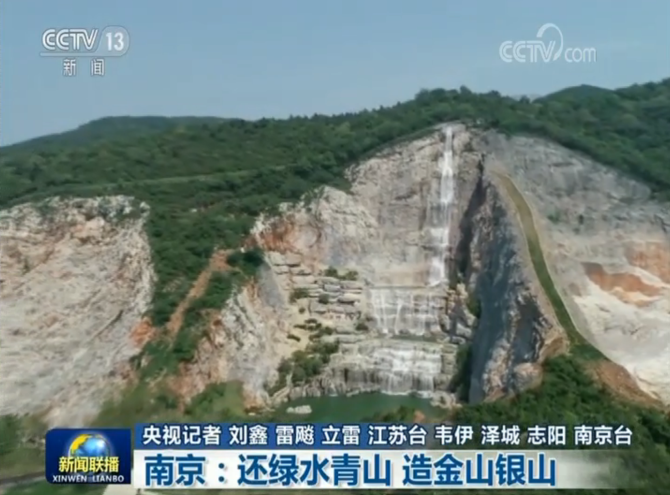居民说的就是汤山脚下的采石场,最多的时候达到上百家,尽管十几年前被全部关闭,但留在山体上的疮疤却难以抚平。2017年,汤山废弃的矿坑华丽转身,清理渣土、修复地形、清除危石近20万立方,复土种植120多种150亩植被,裸露的采石宕口,被打造成3级落差88米的人工瀑布,废料堆积场变身"矿野乐园"。