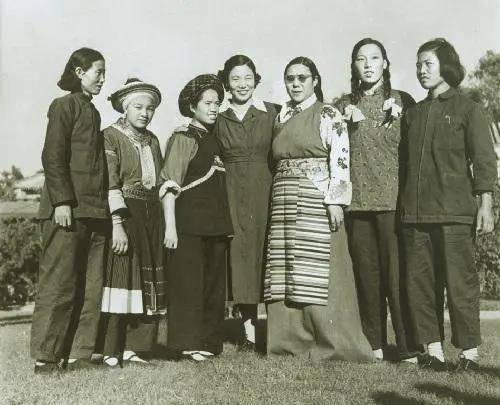 资料图:出席第一届全国人民代表大会第一次会议的女代表(右二为申纪兰)。图片来源:中国人大网