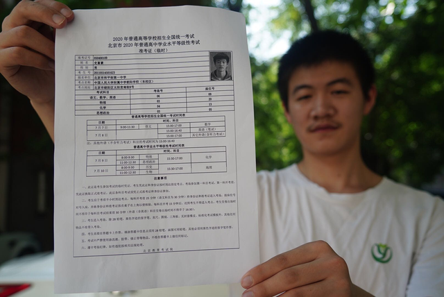 北京市和平里第一中学高三学生拿到打印好的临时准考证。(来源:人民日报客户端综合)