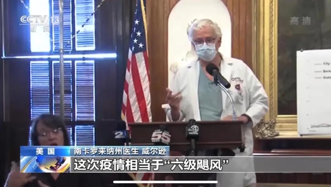 来自美国南卡罗来纳州的一名资深医生威尔逊日前表示,美国的新冠肺炎疫情相当于超越最高等级5级飓风的6级飓风。“我们无法撤离,我们需要留在原地,我们需要远离其他人,我们需要避免危险的社交聚会。” 他呼吁各方要对疫情予以重视:“每个人都要明白,这是一个严重的问题,一个危险的时刻。我觉得现在的情况比我过去40年来在医疗保健领域工作的任何时候都要可怕。”