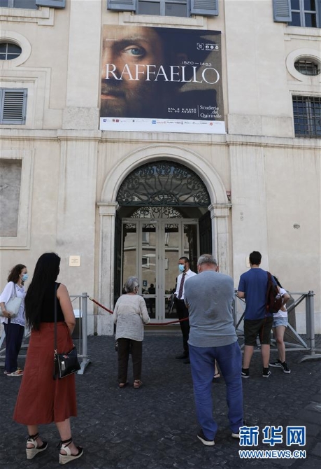 文艺复兴巨匠拉斐尔·桑西逝世500周年纪念展近期在意大利罗马重新开放。此前,为防止新冠肺炎疫情扩散,该展览在3月8日暂停。重启之后的展览采取了充分的防疫措施:参观者需要在网上分时段预约,按预约时间分组,由工作人员带领参观。进入展厅前需测量体温和进行手部消毒,并全程佩戴口罩。展览组织方每五分钟允许一组参观者进入一个展厅,工作人员会随时提醒参观者保持社交距离。