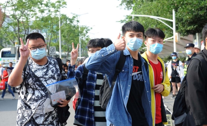 2020年全国普通高校招生统一考试昨天启幕。全市共设置15个考点、772个考场,21568名考生参加考试。其中,市区及邗江区共设五个考点,分别为扬州中学、扬大附中、新华中学、扬大附中东部分校、邗江中学,共有7015名考生在五个考点参考。昨天17:30,随着考试结束铃声响起,高考首日的语文和数学科目考试结束。今天下午,考生将迎来外语科目的考试。