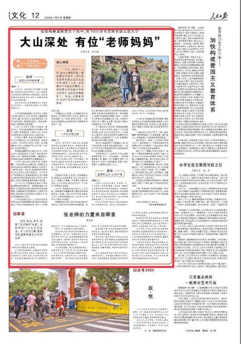 今天,来自丽江华坪的张桂梅老师又登上了人民日报文化版头条,还是版面头条+评论的形式。