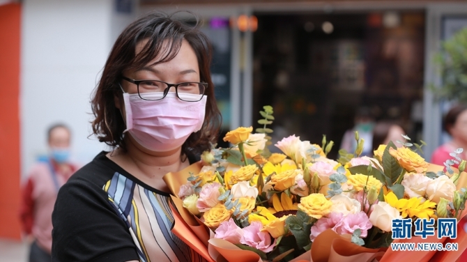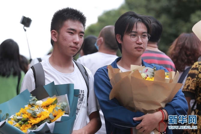 7月8日下午,昆明云大附中考点外,考生收到来自“亲友团”的鲜花。
