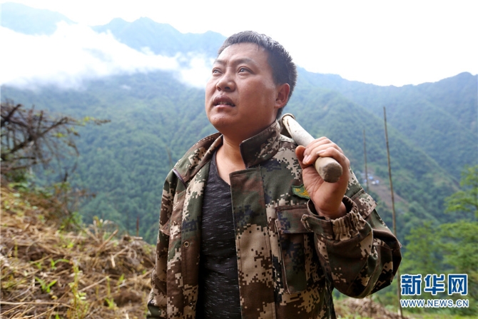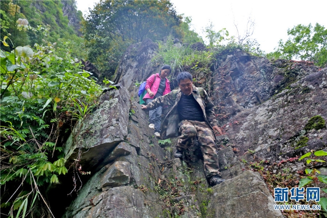 发展产业也困难重重,核桃、草果“种得出来,运不出去,卖不起价”,没有手机信号,想出去打工都找不到去处,“背一背柴,找一篮猪食就过了一天”。图为余友邓与妻子在山上劳作(5月13日摄)。