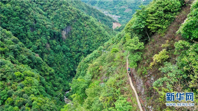 这条人马驿道,布满了余友邓辛酸的记忆。十七八岁时,好几次下山买生活用品,钱用完了只能饿着肚子返回,饿昏在半路;20块钱一袋的水泥,用马驮上来,运费就要100块;道路狭窄湿滑,先后有十七八匹马坠入深谷,尸骨难寻;有乡亲生重病,抬下山送县医院救治,半路断了气(5月13日摄)。