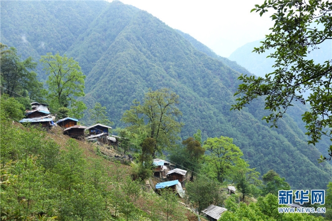 村民以前住的叉叉房、茅草房和木板房散落在陡峭的山间。搬迁后,主体房已经全部拆除,留下的是生产房。图为村民的生产房(5月13日摄)。