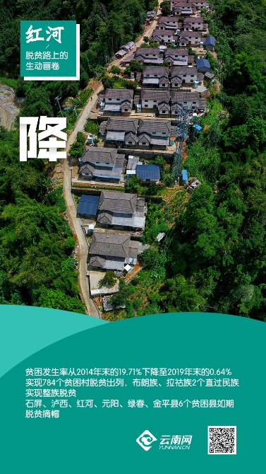 据介绍,2014年以来,红河州累计实现减贫88.88万人,贫困发生率从2014年末的19.71%下降至2019年末的0.64%,实现784个贫困村脱贫出列,石屏、泸西、红河、元阳、绿春、金平等6个贫困县如期脱贫摘帽。未摘帽的屏边县、14个未脱贫村、全州剩余的22030未脱贫人口已达到脱贫退出标准,夺取脱贫攻坚战全面胜利目标可期。