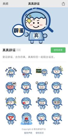中国互联网联合辟谣平台“真真辟谣”表情包正式上线