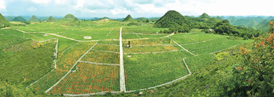 种下的柑橘与其他林木一样,满足了生态保护的需要,同时也为村民致富铺平了道路。江龙村探索出了一条“山、水、林、田、路、村”的石漠化综合治理的路子。