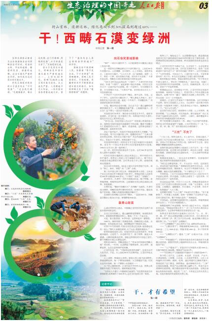 大家都说,扶贫,先扶志。其实,搞生态文明建设,更要先扶志。保护生态,不是一朝一夕就能干成,需要的是一代人甚至几代人,一张蓝图绘到底。(张一琪)