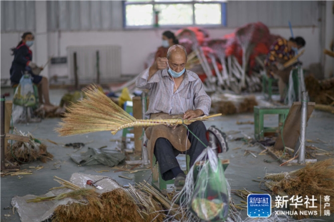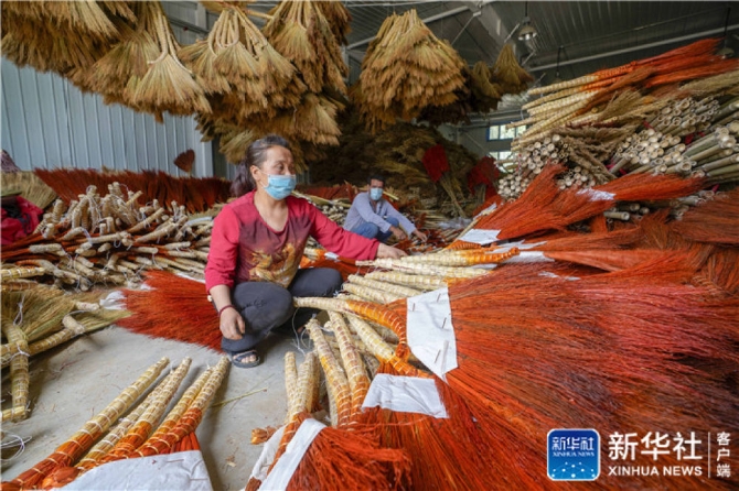 市场打开后,他们又继续加大投资。县里出资建起1000多平方米的扫把工厂,员工近百人,其中多半是贫困户。产品也从单一的高粱扫把发展到竹子扫把、芨芨草扫把、扁丝大扫把及拖把等产品,如今年销售额超500万元。