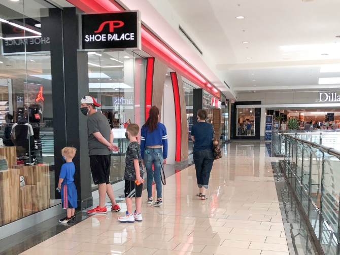 5月5日,因新冠疫情关闭数周后,美国得克萨斯州达拉斯市的一些商场重新开门,但营业时间有所缩短。新华社发(田丹摄)