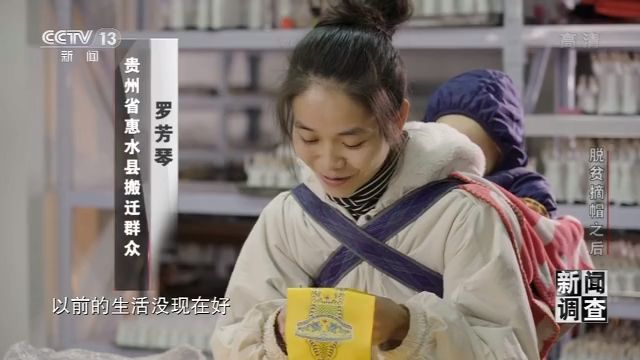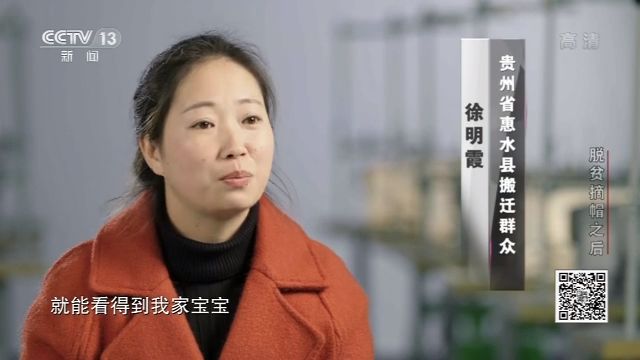 贵州省惠水县搬迁群众 徐明霞:我现在就是很稳定了,我有四千多元(工资),我一下班回去,就能看得到我家宝宝,还有我公公婆婆,那就是一家人,虽然我在里面加班很辛苦,但是我回去看到他们以后,我就一点都不辛苦。