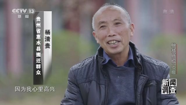 贵州省惠水县搬迁群众 杨清贵:移民搬出大山了,手提行李住新房,看病就在家门口,儿童送进新学堂,户户有人去上岗,两不愁来三保障,全靠政府扛大头。