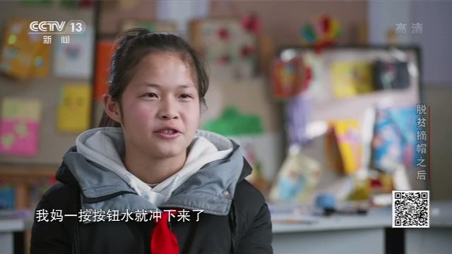 贵州省惠水县搬迁安置小学学生 罗浪微:有一次我家来了那些老家的亲戚,上厕所就叫我妈妈的名字,就说这个要怎么冲,我妈一按按钮水就冲下来了,然后我的那个亲戚就说,这个好神奇啊,居然可以冲水。