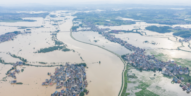 从7月11日6时至12日0时,先后有四个水文站的水位超过1998年的历史最高纪录!航拍江西鄱阳洪灾现场,多个村庄浸泡在洪水中。