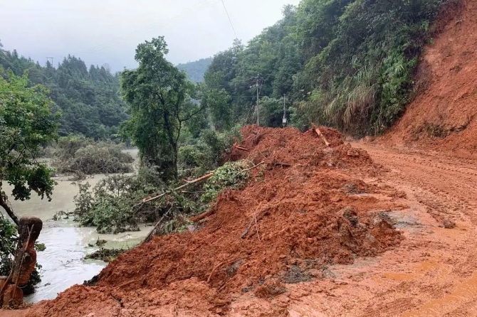 景德镇浮梁县臧湾乡发生山体滑坡,通行道路被阻,据悉,有四组抢救队伍及多个村已被困3天之久。