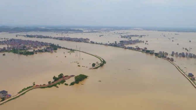 在鄱阳湖下游,中核集团同方江新所在地江湖水位快速上涨,面对异常罕见的暴雨内涝和洪水迅猛上涨的严峻形势,紧急动员党员干部和职工群众,迅速、积极、主动投入到防汛抗洪抢险救灾中去,把洪水造成的损失尽量降低到最小程度。