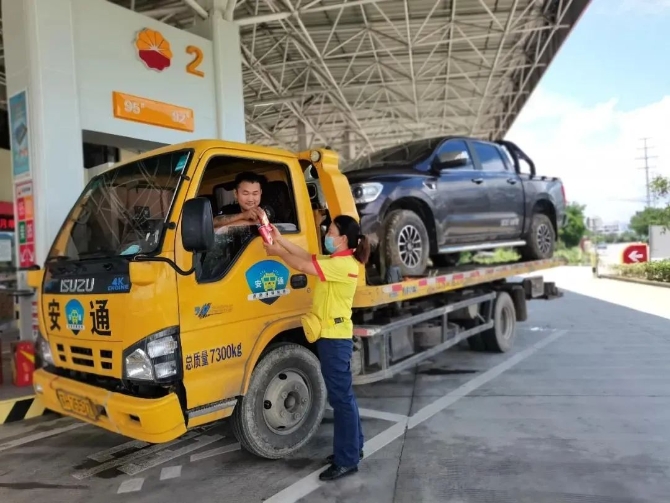 九江庐山石油隘口加油站工作人员桂骏为沙湖山防汛指挥部送油。
