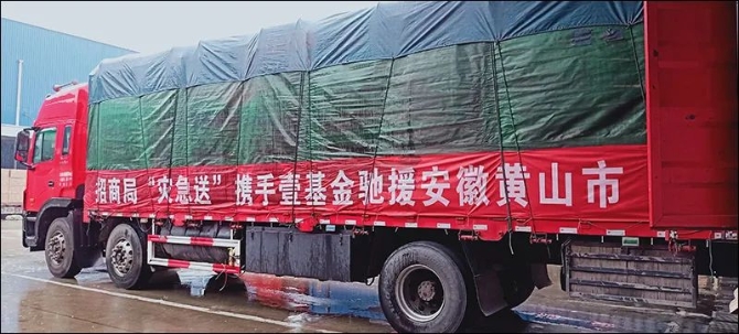7月7日,针对湖北、安徽两省严重洪涝灾害,招商局“灾急送”协调外运物流湖南公司,连夜盘点应急物资库存,并第一时间调度运输资源装车发运。