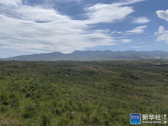 这是青海省海北藏族自治州海晏县国家级防沙治沙综合示范区的克图沙区,原来的大片流沙区如今已是绿意盎然(7月7日手机拍摄)。新华社记者 温竞华 摄