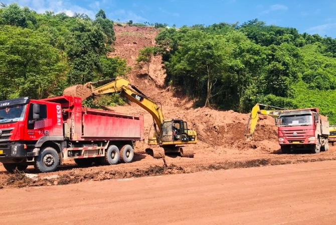 7月1日,受强降雨影响,垮塌的山体再次滑坡,1.2万立方米的泥石流涌向公路。巨能集团迅速展开抢险,高峰期间调集了22 辆自卸车、3辆挖掘机、2辆装载机、3台钻机同时作业,150多位工人分两班昼夜替换作业。