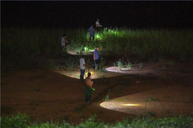 7月11日,位于湖南省岳阳市君山区的洞庭湖大堤上,工作人员和群众在夜晚巡堤查险。新华社记者 陈泽国 摄