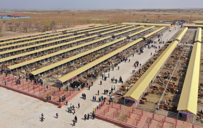 科右中旗肉牛交易市场(5月1日摄,无人机照片)。新华社发(梁永峰 摄)