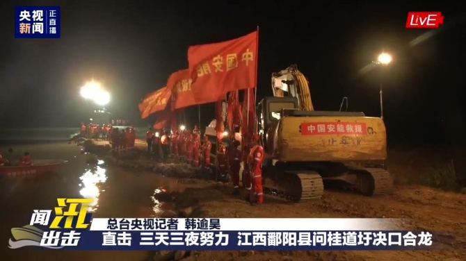 7月13日23时许,经三天三夜的努力,决口被成功封堵。