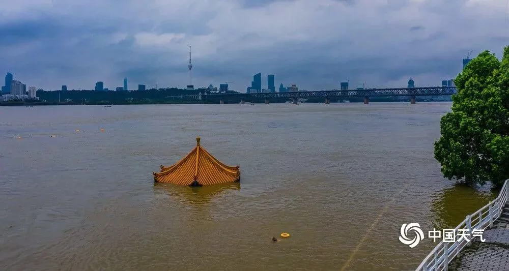 截至7月13日,今年入梅以来湖北累计雨量已经超过了1998年梅雨期降水量总和,武汉长江、汉江水位高涨,防汛形势十分严峻,11日起武汉江滩公园已实施封闭管理。图为12日航拍的武汉江滩。(中国天气网/李必春)