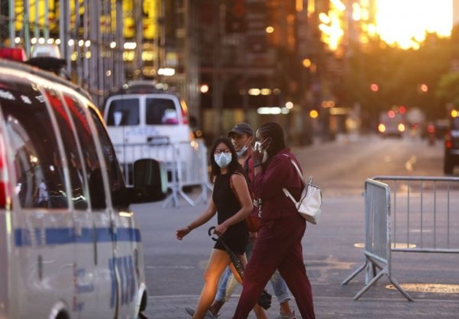 图说:6月27日,人们在美国纽约时报广场观光。 新华社记者 王迎 摄