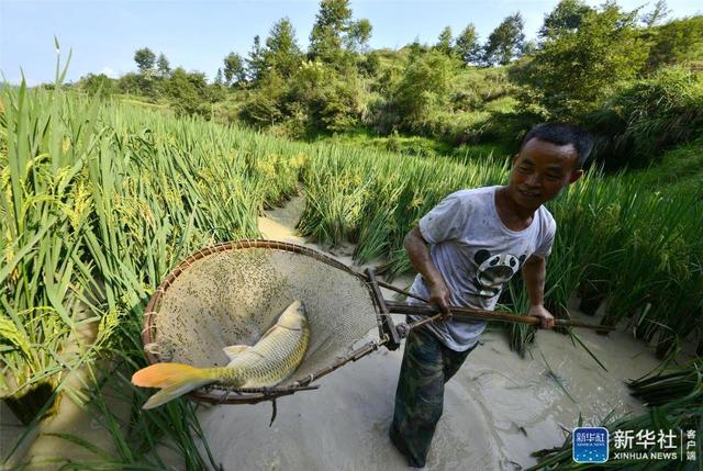 杨卓林在贵州省榕江县仁里乡太元稻田里捉稻花鱼。新华社发(资料图片 王炳真 摄)