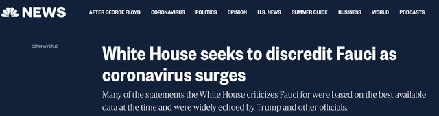 △美国全国广播公司(NBC):随着疫情扩散,白宫试图抹黑福奇