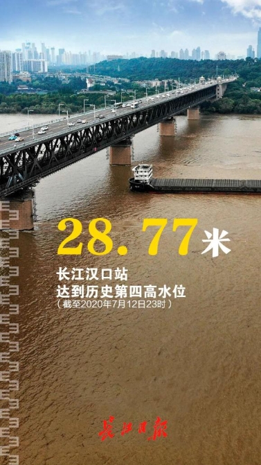 汉口站洪峰水位突破28.77米