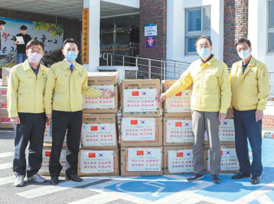 3月,韩国疫情防控形势逐渐严峻,龟尾成为韩国疫情最为严重的地区之一,长沙人民同样牵挂在心。得知友城面临着各类防疫物资紧缺的困境,长沙迅速调配医用防疫物资,先后两次向龟尾进行捐赠。
