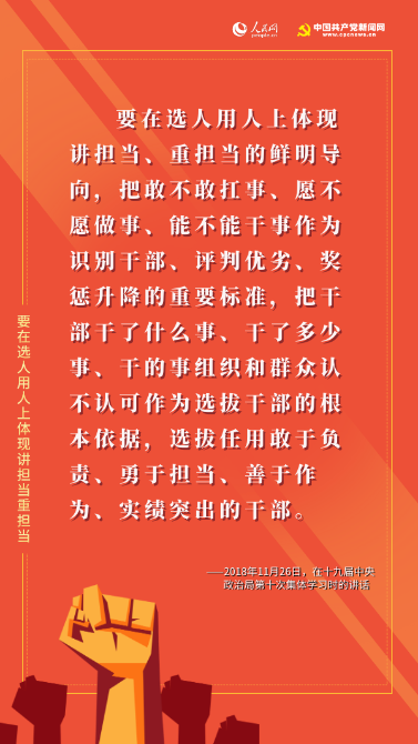担当精神是共产党人从历史中继承的优秀品质。近年来,习近平总书记在不同场合的重要讲话中多次强调责任担当。“干部敢于担当作为,这既是政治品格,也是从政本分。” 如何理解担当作为?怎样坚守担当作为?人民网·中国共产党新闻网带您听一听总书记怎么说。