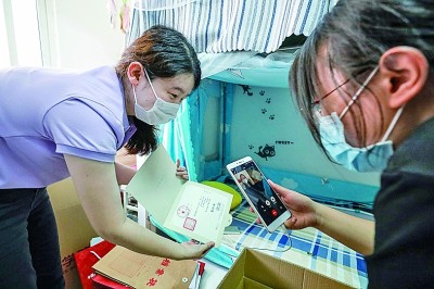 每一声确认里,都潜藏着老师浓浓的关爱。冒着酷暑,老师们在狭小的宿舍空间里弓着身子,举着手机,通过视频“直播”和毕业生同学们细致沟通,衣服、证书、书籍、护肤品……从床上到床下,不落下每个角落。