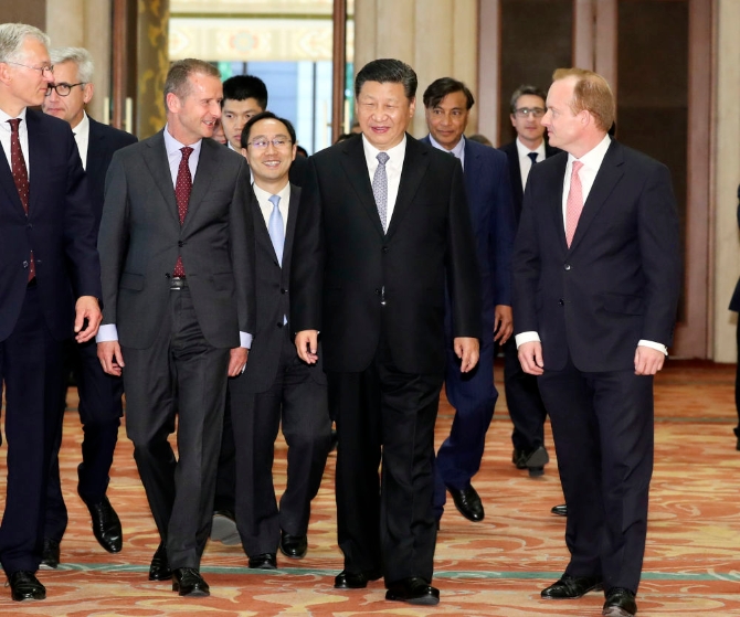 2018年6月,“全球首席执行官委员会”特别圆桌峰会在北京举行。习近平主席会见了来华与会的知名跨国企业负责人,并同他们座谈交流,一一回应意见和建议。