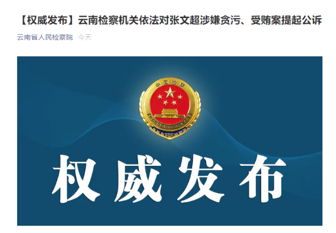 日前,云南省发展和改革委员会利用外资和境外投资处原处长张文超(正处级)涉嫌贪污、受贿罪一案,经云南省人民检察院指定管辖,由禄丰县人民检察院依法向禄丰县人民法院提起公诉。