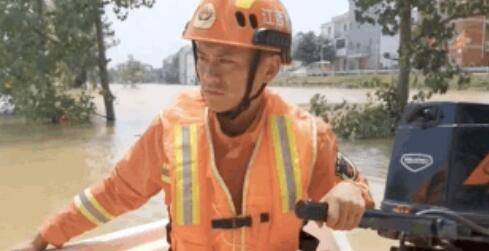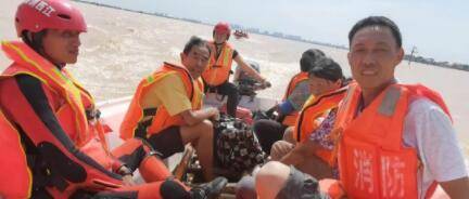 △图为彭阿瑞(左三)在抗洪前线转移群众