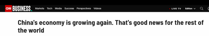 16日,中国GDP由负转正的数字一经公布,美国有线电视新闻网(CNN)即发表题为《中国经济恢复增长是全世界的好消息》的文章。文章认为,3.2%的增长意味着中国扭转了经济衰退局面。作为世界上第一个采取严格措施防控疫情的国家,中国的较早恢复经济增长,对其他国家是个好兆头。