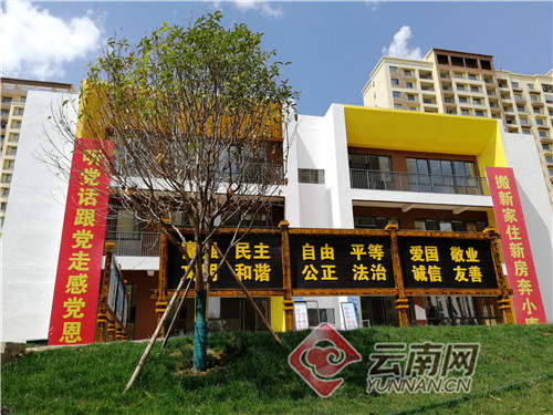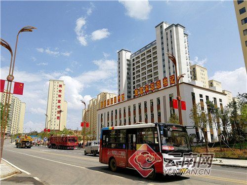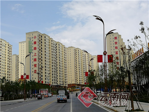 “小康路上跟党走,脱贫致富感党恩。”夕阳西下,安置区高楼外墙上的大型红色标格外醒目。路对面的小广场上人头攒动,从“山里人”变“城里人”的搬迁群众相聚一起对唱山歌,“搬迁住进新房子,啊来来……”“感谢党的好政策,啊来来……”,深情的歌声唱响了搬迁后的幸福新生活。(云南网 记者沈迅 蔡侯友)