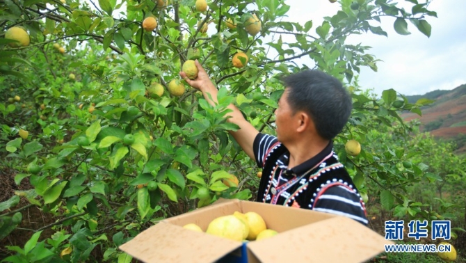 胡生采摘柠檬(6月13日摄)。新华网 刘东/摄