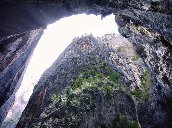 通天峡栈道建于悬崖峭壁之上。一步一步登上,眼前逐渐豁然开朗,名不虚传。两边的峡谷撑起一片神似“海豚”的蓝天,飞跃而上。