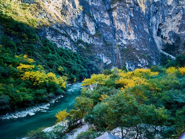 同样是栈道,这条却如一根细丝腰带挂于峡壁之上,伴着青山绿水。行走其中,恍如误入人间仙境。