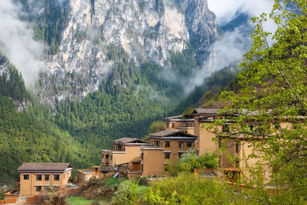 村口的煨桑台飘着浓浓白烟,经幡在风中飞扬,似在热烈欢迎游客的到来。