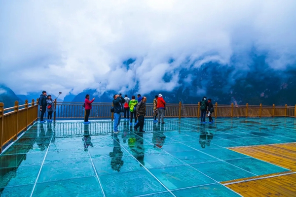落差1000多米的高空玻璃栈道,惊险、刺激,大抵是冒险人士的最爱。可以仰天长叹,可以低头俯视,一草一木,尽在眼中。